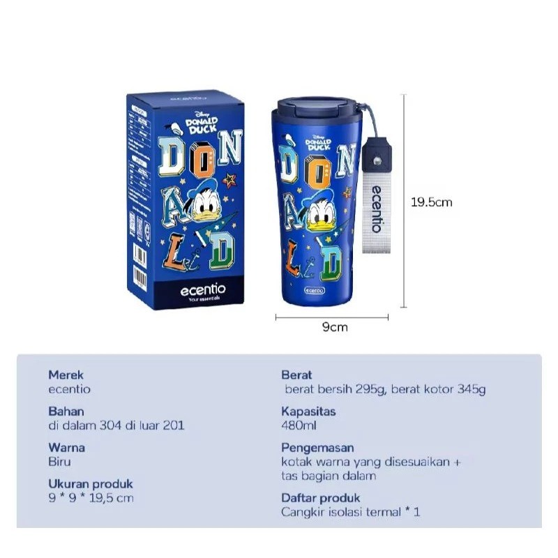 BOTOL ECENTIO 480ML DONALD DUCK ET02201 BLUE | Botol Ecentio Kapasitas 480ml Donald Duck ET02201 Biru