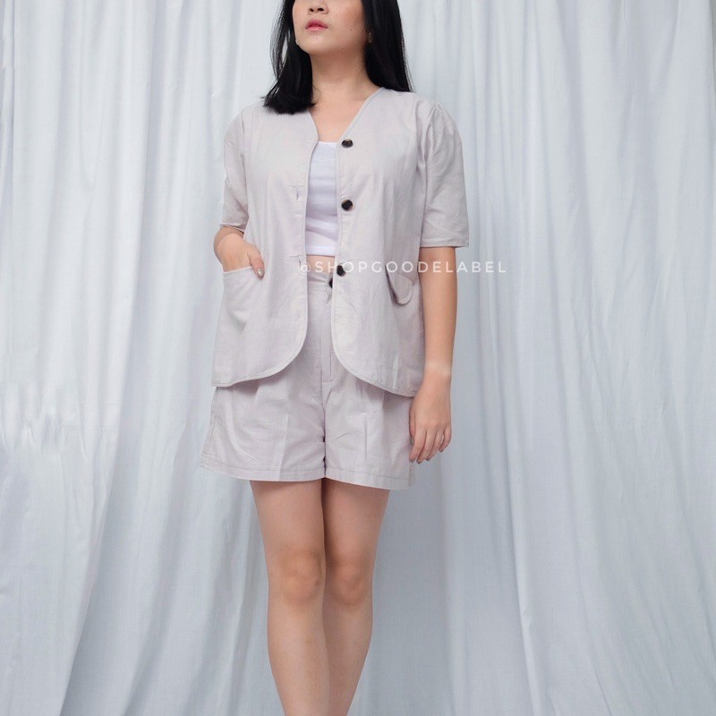 Shopgoodelabel - MARA SET - Setelan Linen Blazer Multifungsi Celana Pendek Fashion Wanita