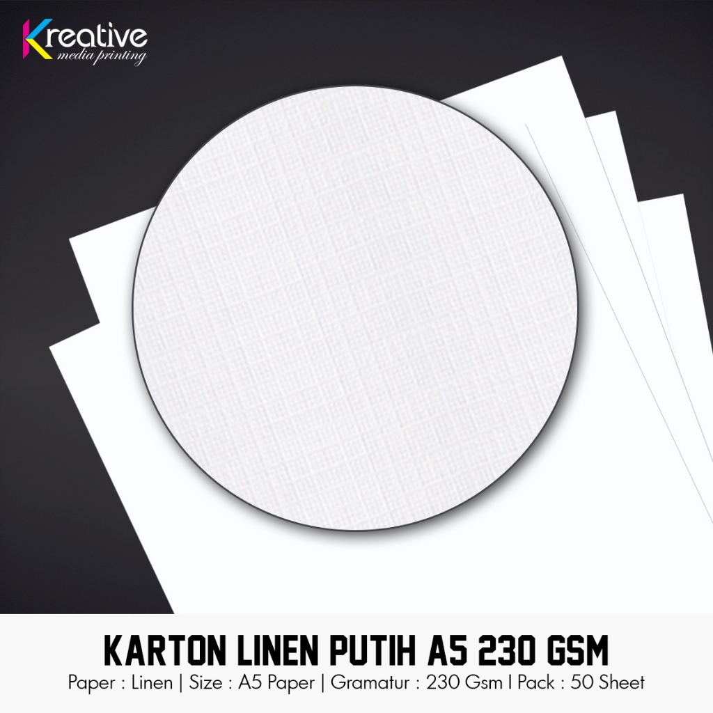 Karton Linen Putih (A5 / 230 Gsm / 1 pack = 50 lbr)