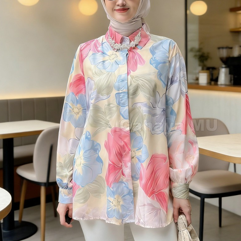 Blouse Motif Floral Elegan Bahan Premium Cocok untuk Acara Formal