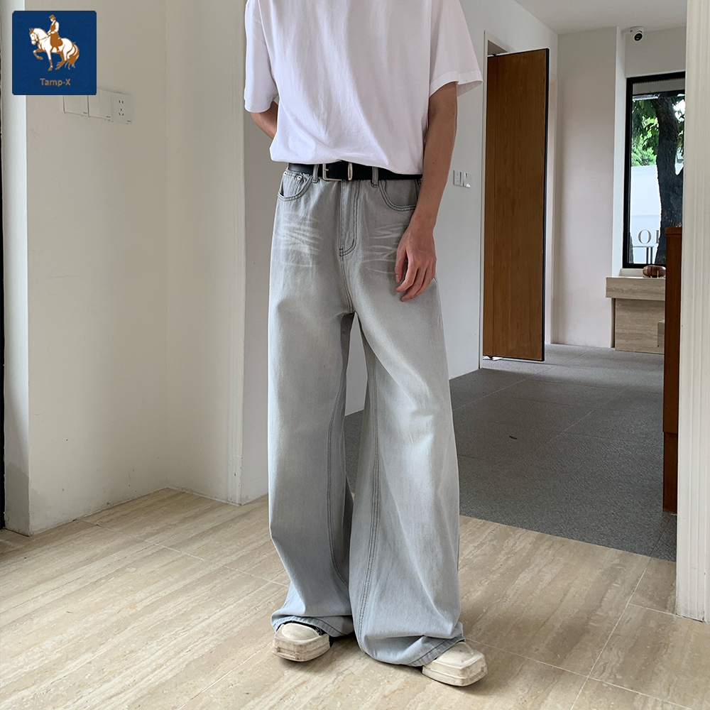 Tamp-X Oversize Celana Jeans Pria Baggy Skena Denim Grey Jumbo Loose Jeans Korean Style Kulot Straight