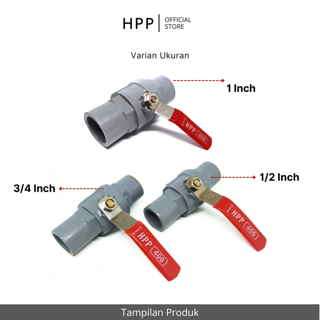 HPP Ball Valve Pvc Gagang Besi Merah 1/2" - 1 Inch Stop Kran Pvc Tebal