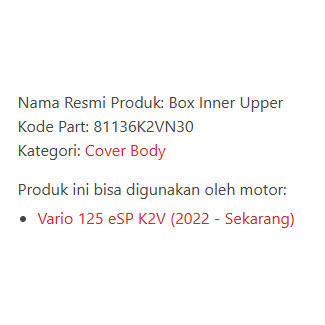 Cover Saku Atas Vario125 New 2023 K2V 81136K2VN30