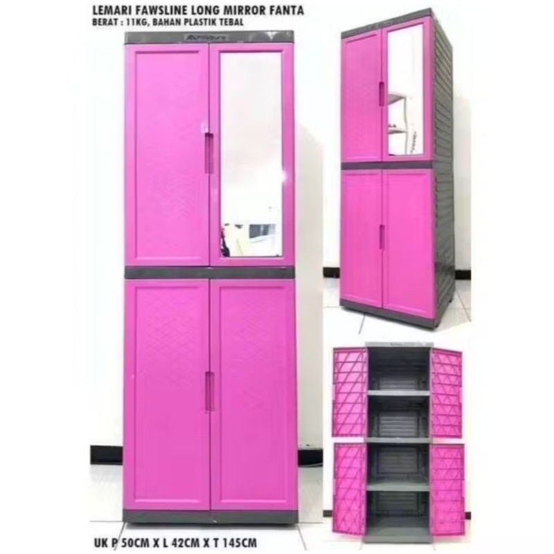 LEMARI PAKAIAN FAWSLINE KACA PANJANG /LEMARI PLASTIK FAWSLINE KACA / LEMARI KACA PANJANG