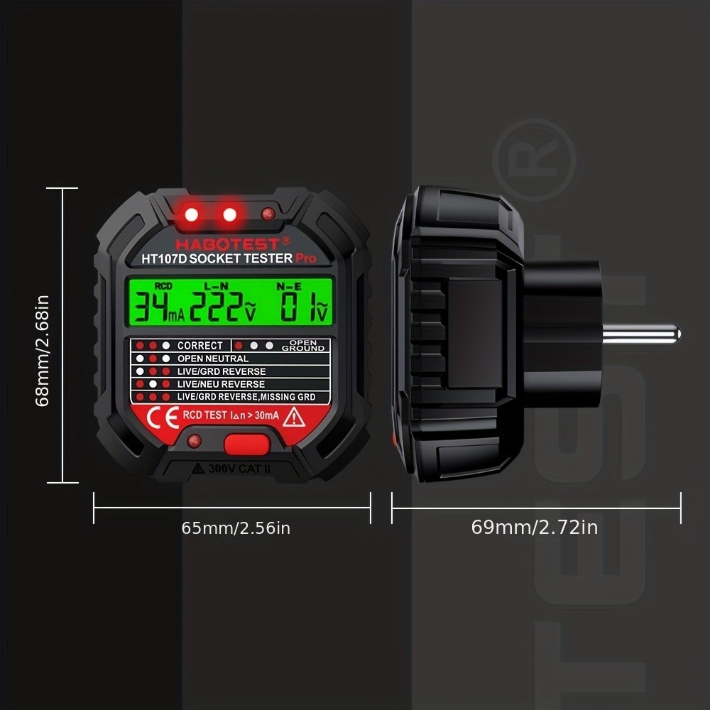 HABOTEST HT107D GFCI Socket Tester 48V-250V Earthing Tester Pencari Kebocoran Listrik Outlet Tester Otomatis Sirkuit Listrik Polaritas Tegangan Detektor Breaker Finder