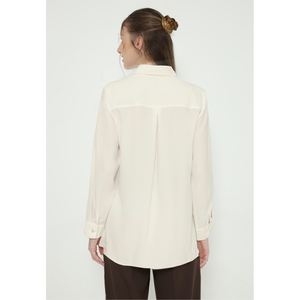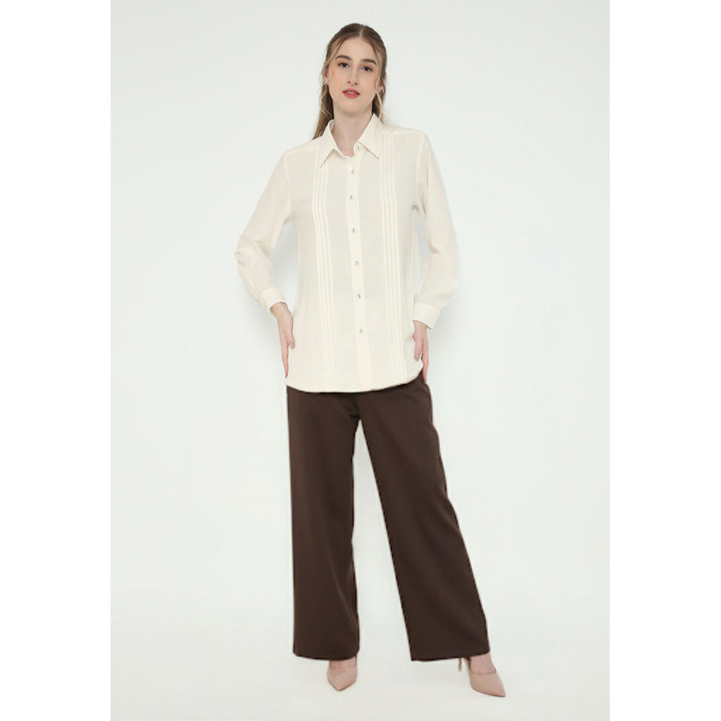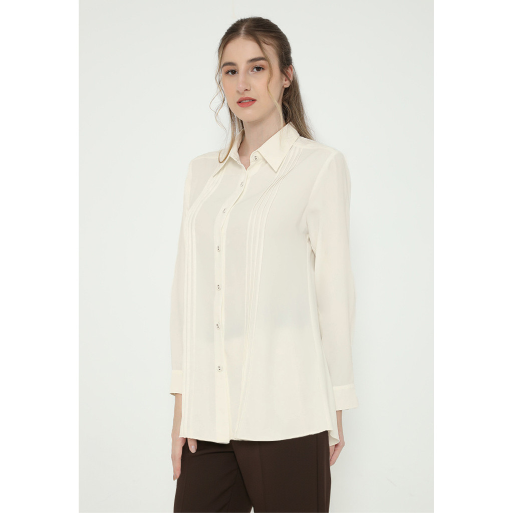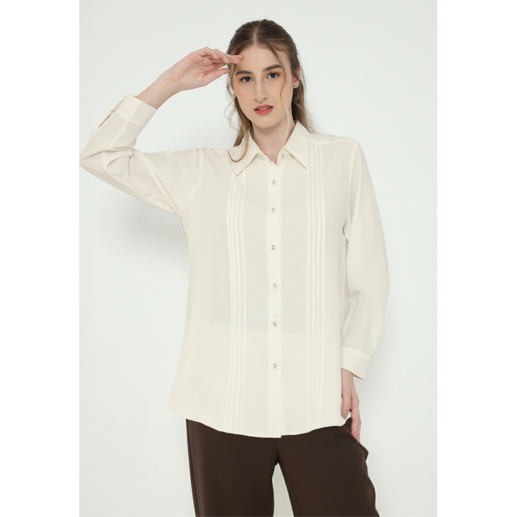 Shirt Cream Polos Wanita Formal Aksen Lipit Depan Elegan Arlette By Brilliant Girl
