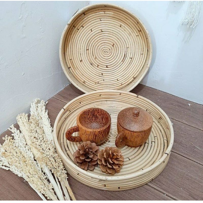Set Tray Rotan isi 2 / Nampan Rotan Bulat Natural