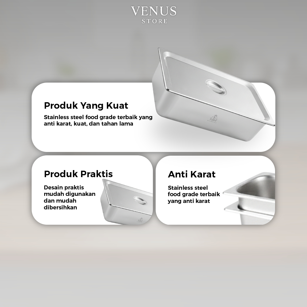 Venus Store - Wadah Stainless Steel Bertutup Wadah Sayur & Lauk Tutup Rapat Premium TR321
