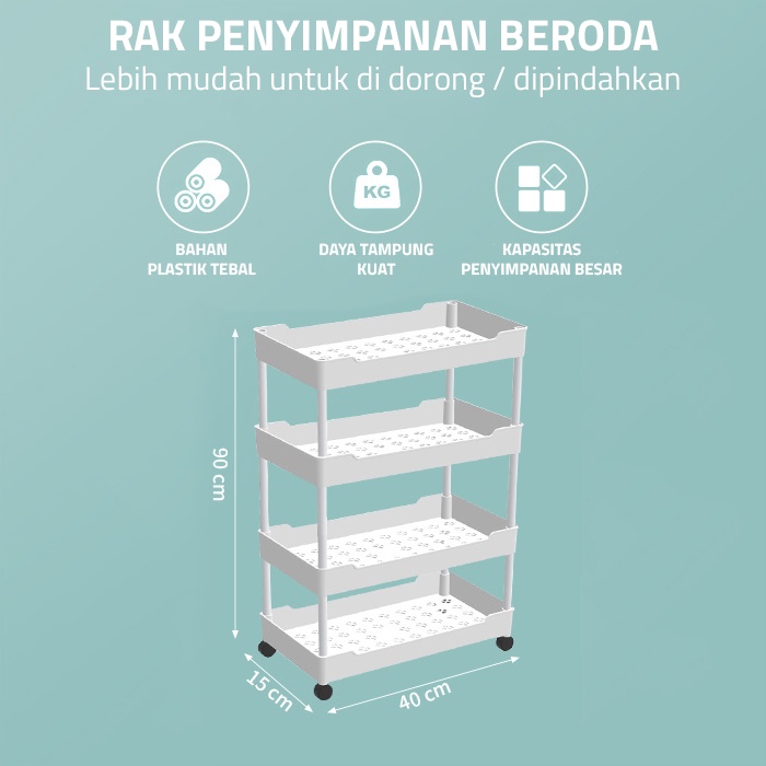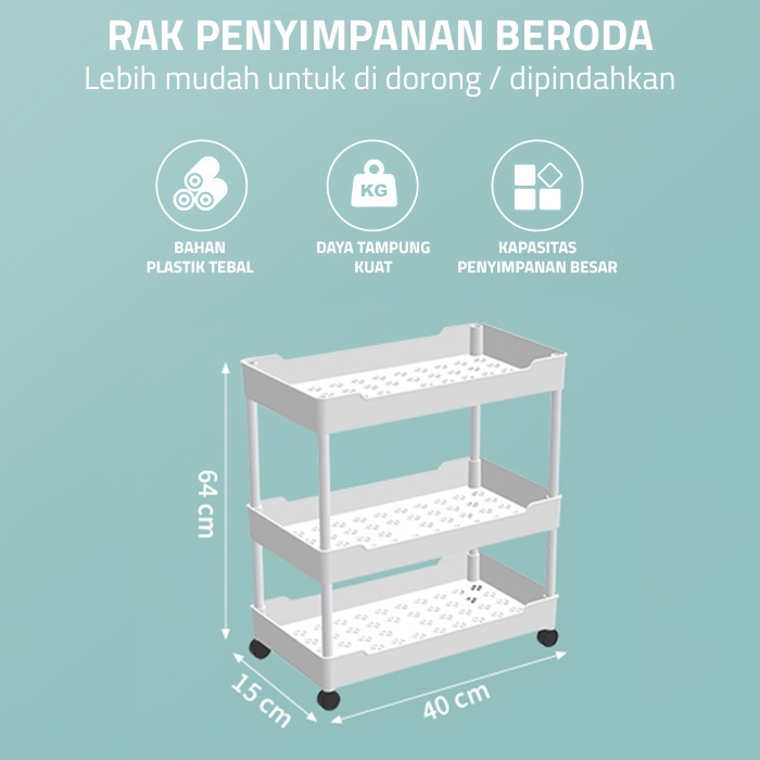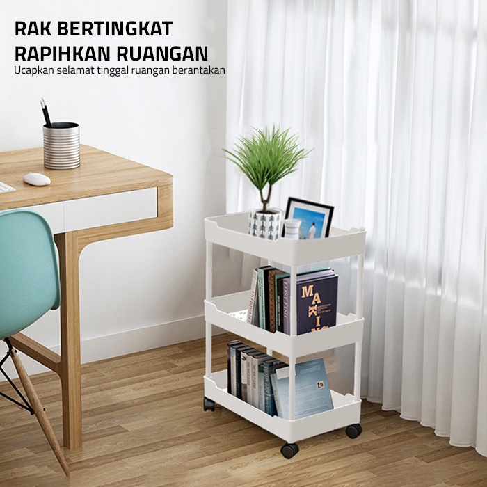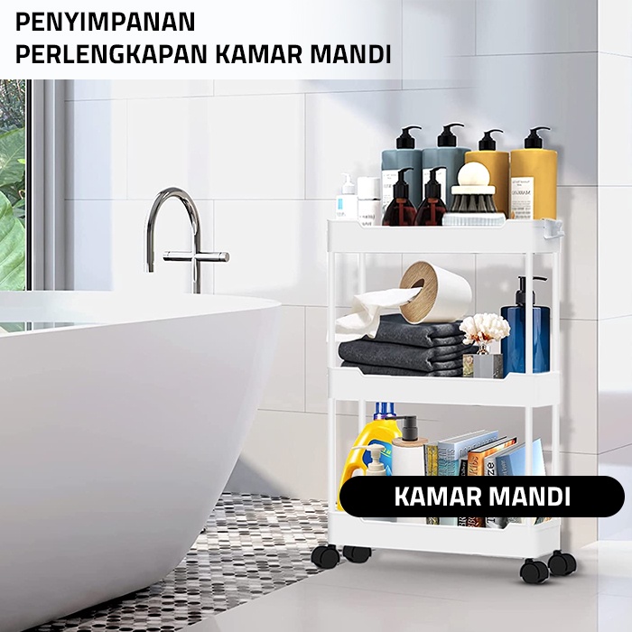 GM Bear Rak Susun Troli P0173 - Rak Susun Plastik Tingkat Dapur Kamar Mandi Roda Serbaguna