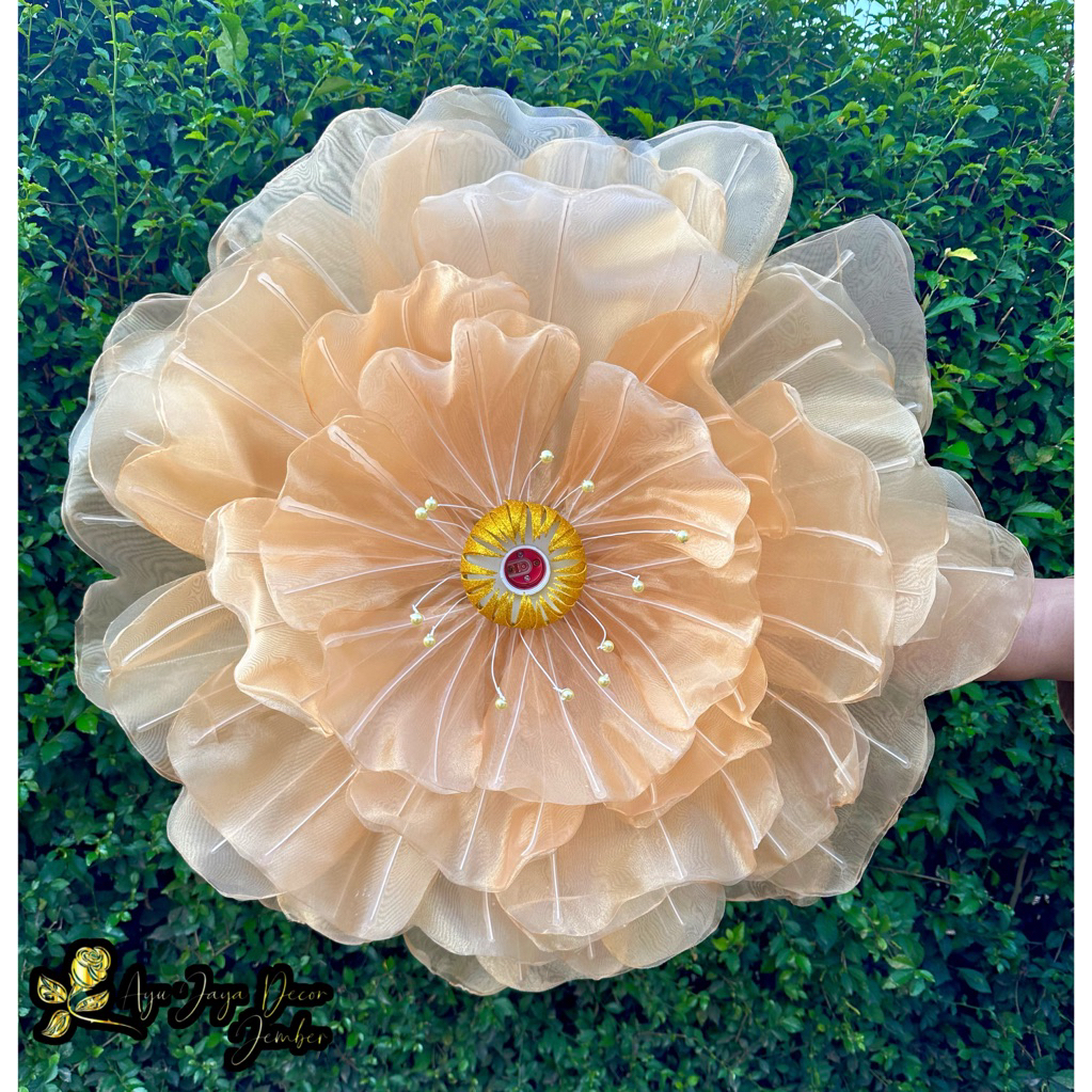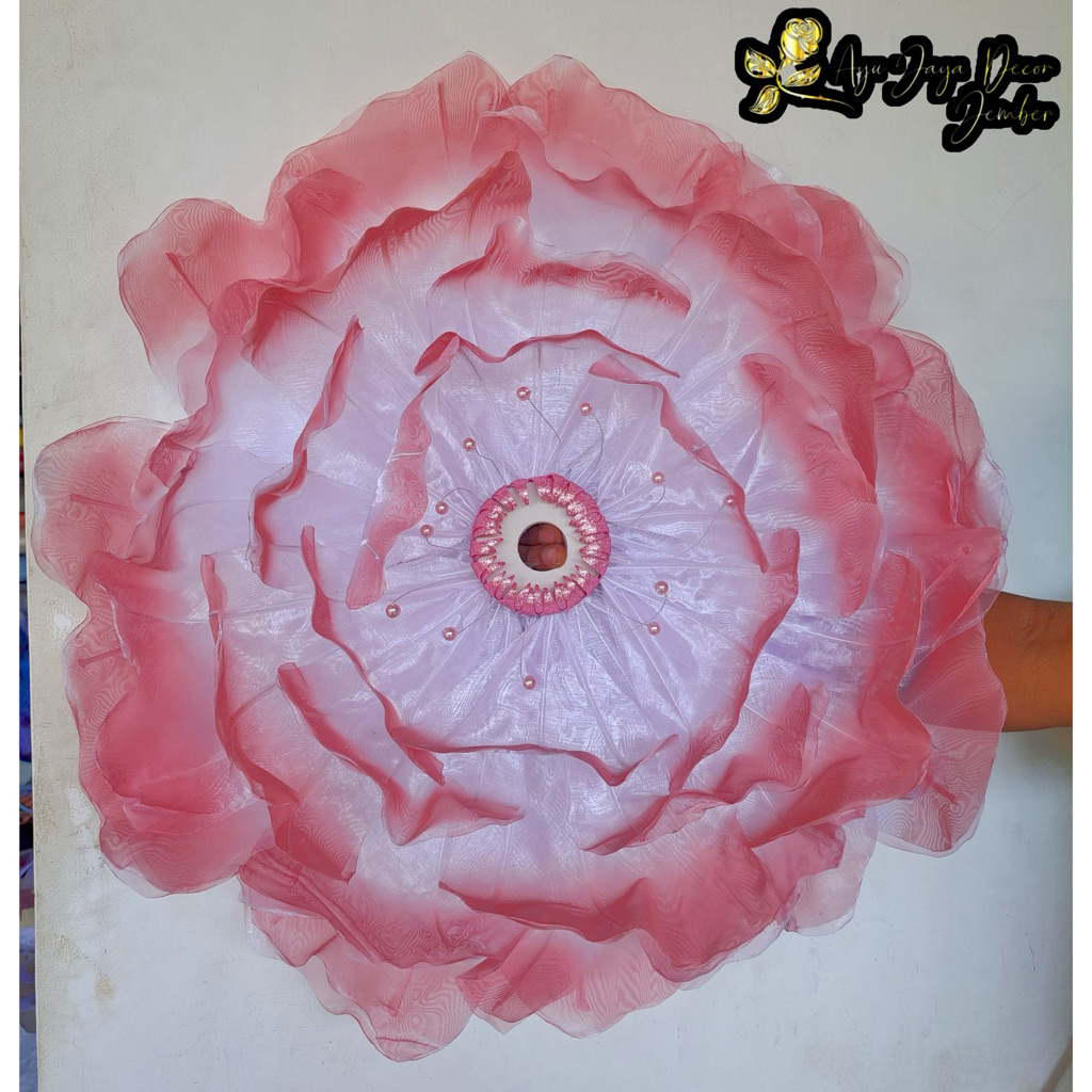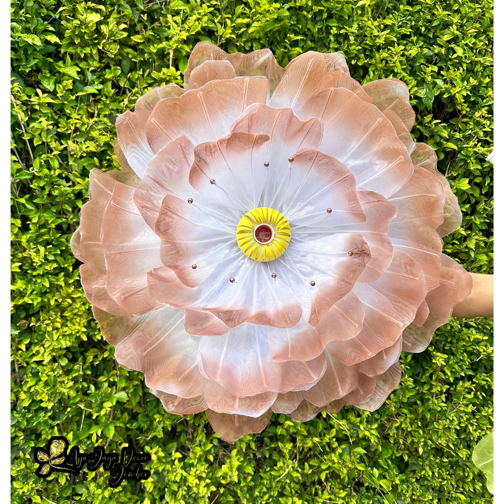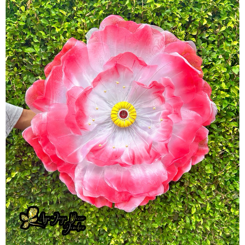 Bunga Peony Bunga Hiasan Kain Organdi Model Bunga Peony Dekorasi Pelaminan diameter 70cm