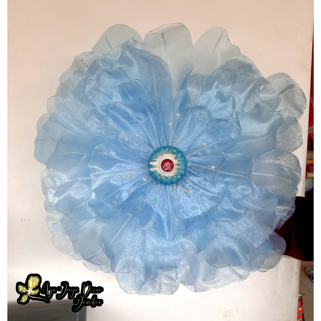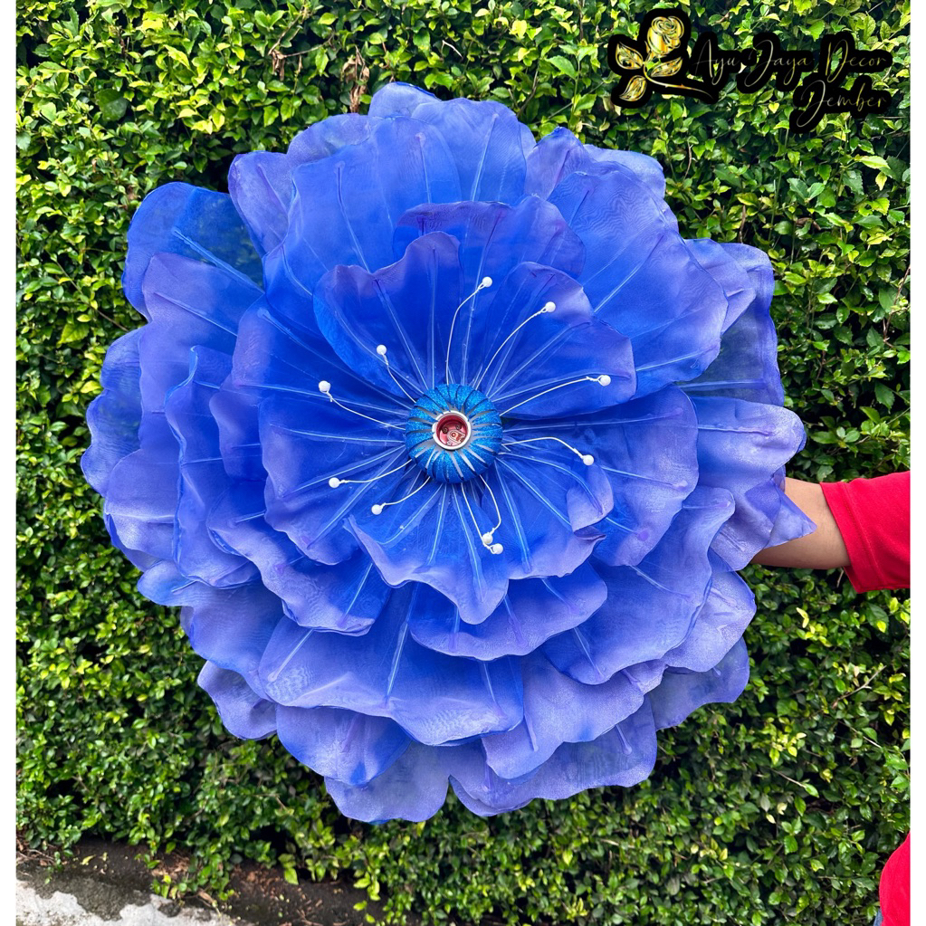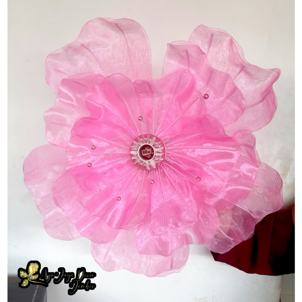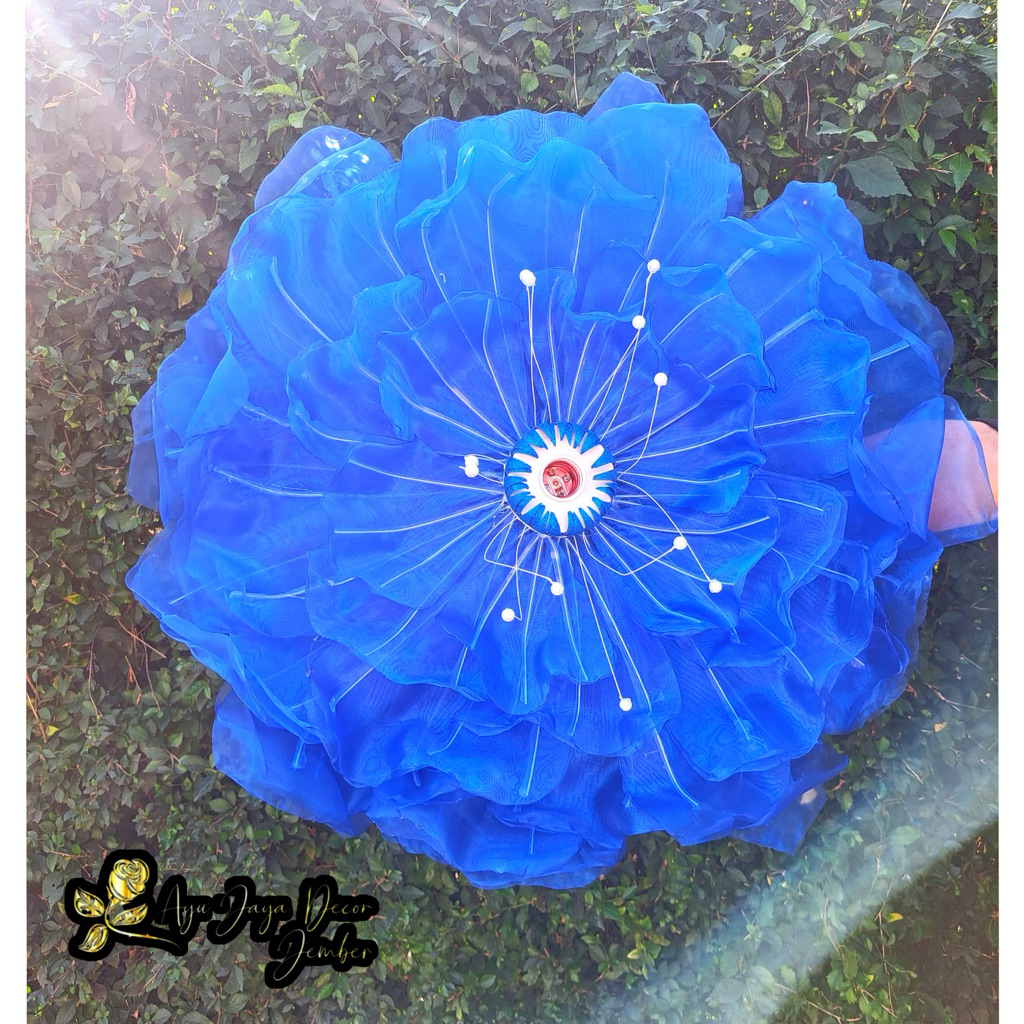 Bunga Peony Bunga Hiasan Kain Organdi Model Bunga Peony Dekorasi Pelaminan diameter 70cm