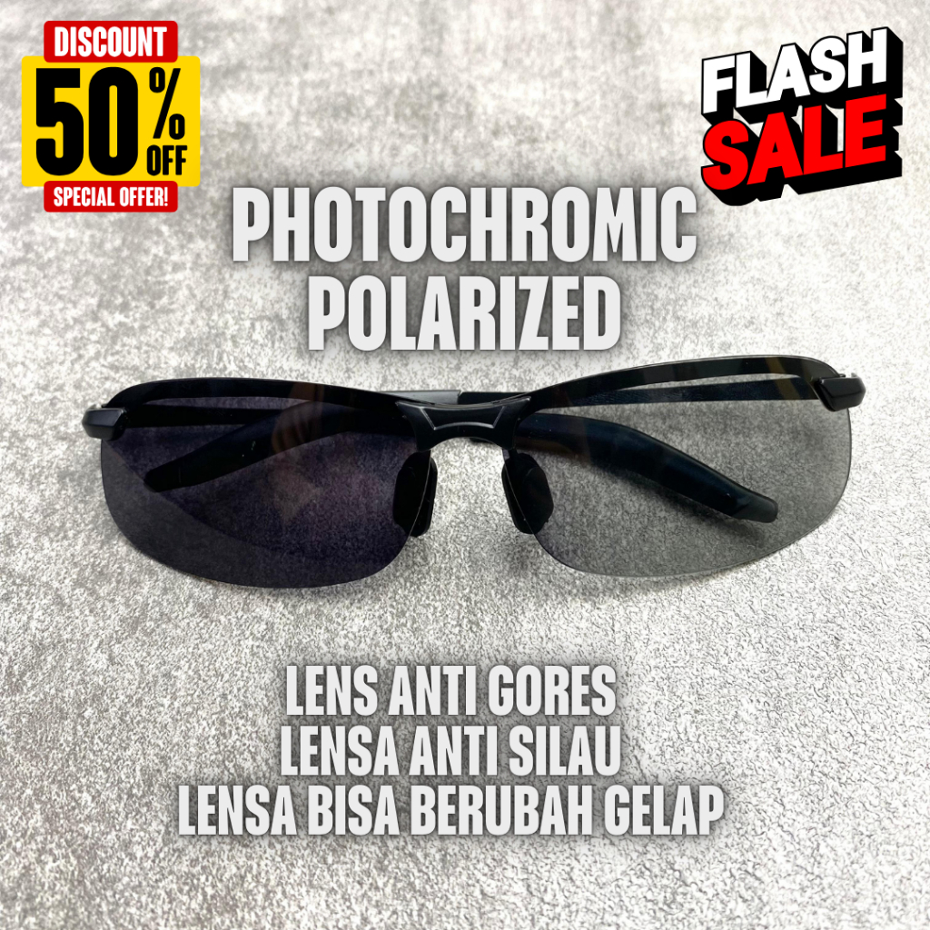 Kacamata Pria Hitam Sporty Photochromic Polaris Sunglass Hitam Cowok Kaca Mata Hitam Lensa Polaris Anti UV400