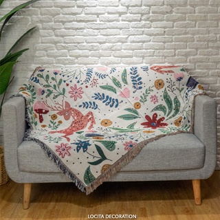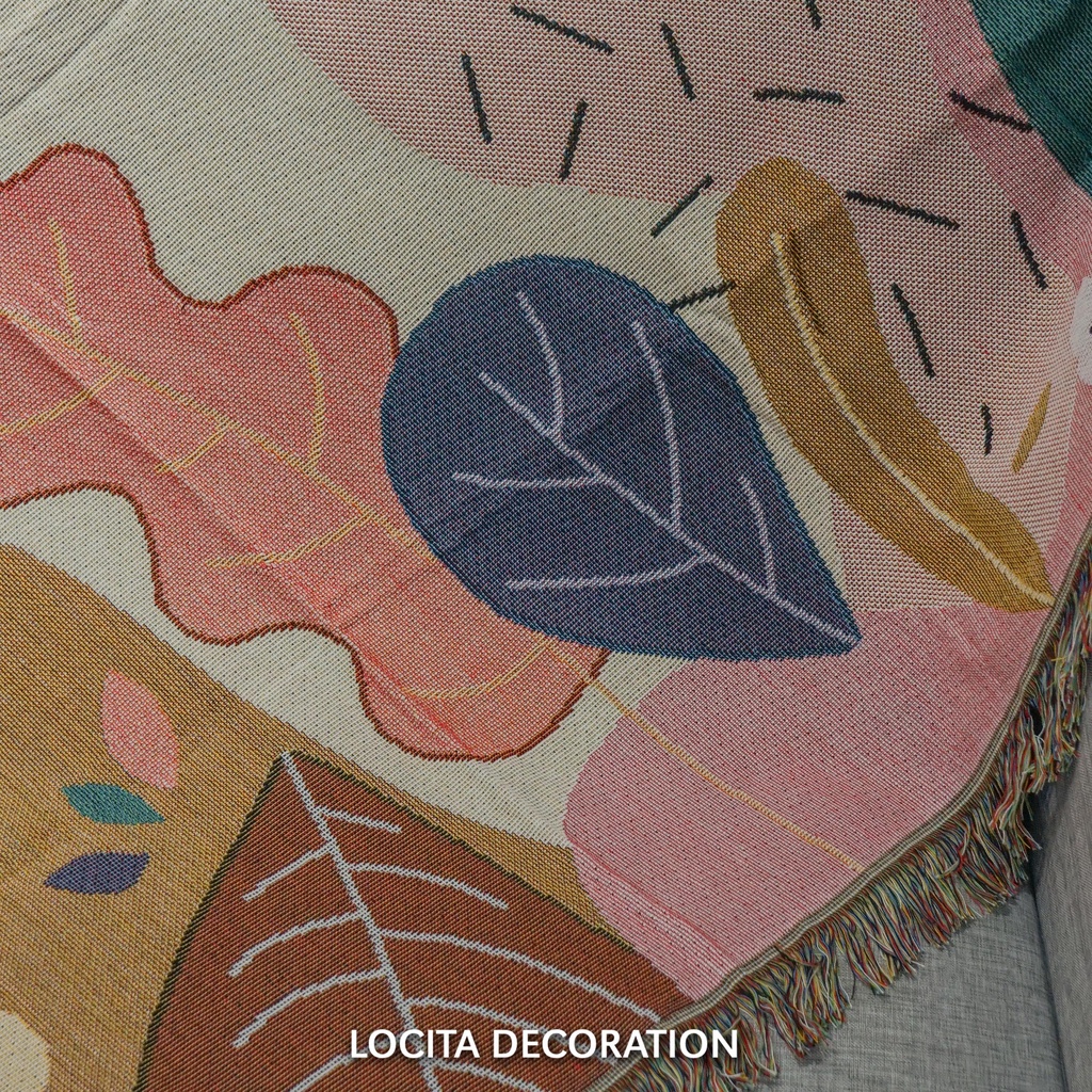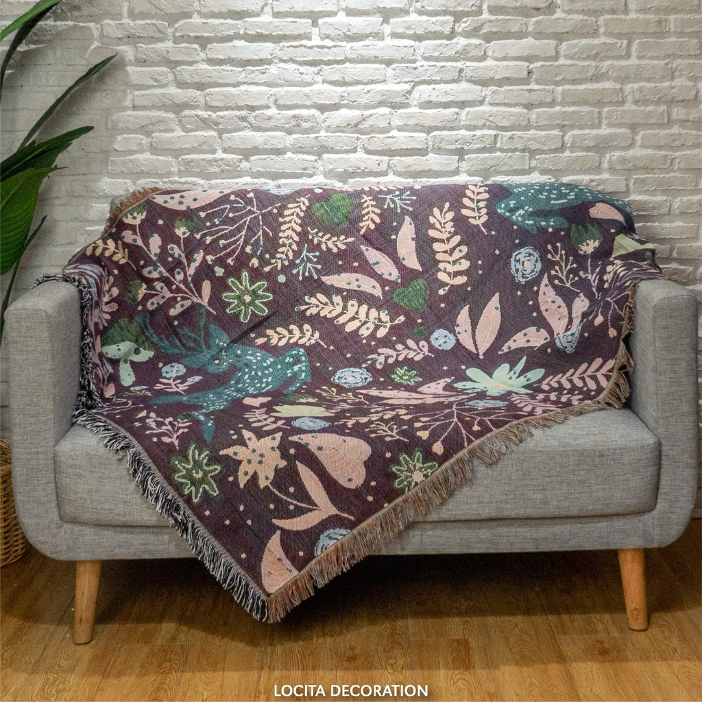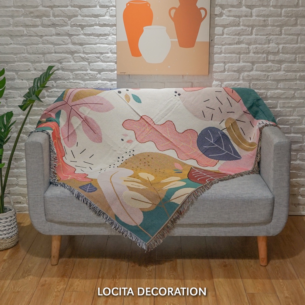 Multifunction Throw Blanket/Selimut Cover Sofa Alas Lantai Alas Piknik Taplak Meja Walldecor Forest & Leaves