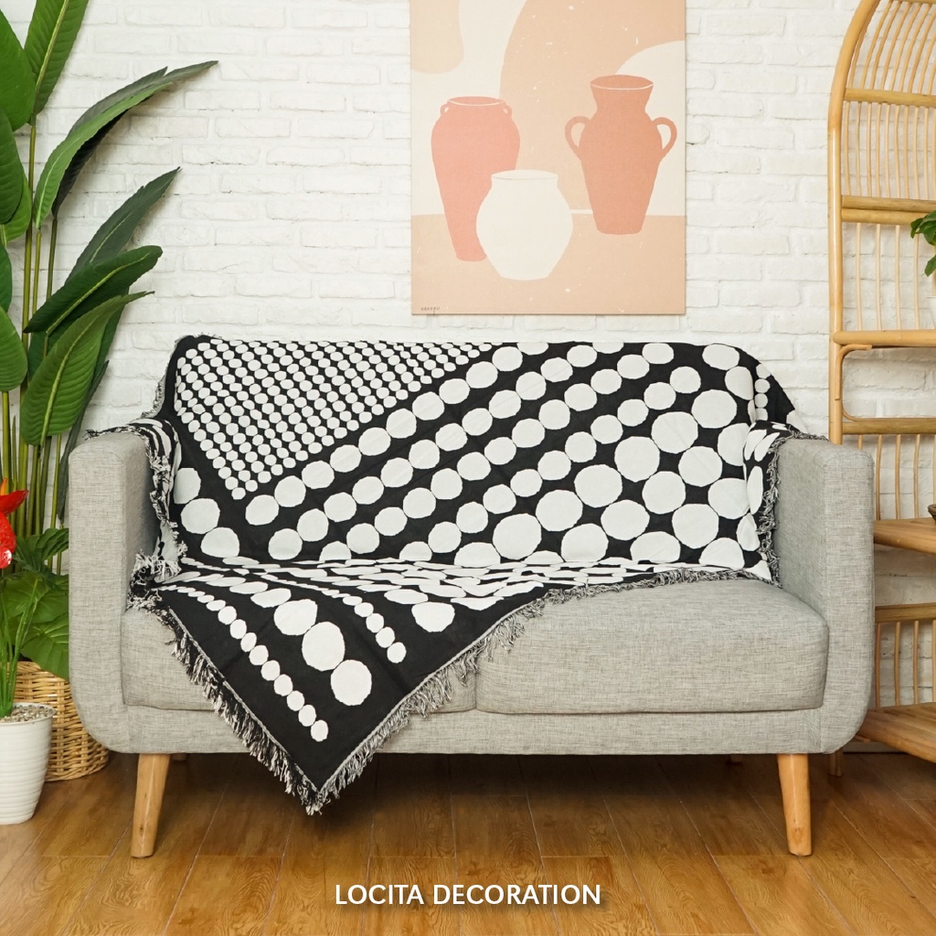 Multifunction Throw Blanket/Selimut Cover Sofa Alas Lantai Taplak Meja Alas Piknik Walldecor Dot Black Hitam Putih Monokrom