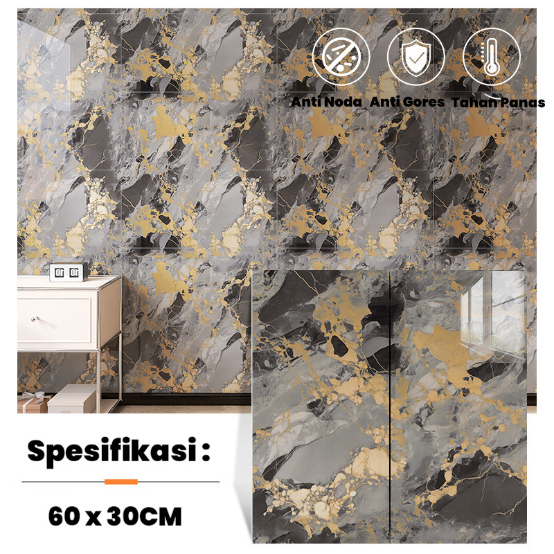 (10 Lembar)wallpaper dinding keramik 60cm*30cm sticker dinding ,wallpaper kamar mandi ,welpaper dinding kamar ,wallpaper untuk dinding lembab ,Ada perekat sendiri, tahan air & kotoran, bikin rumah makin keren