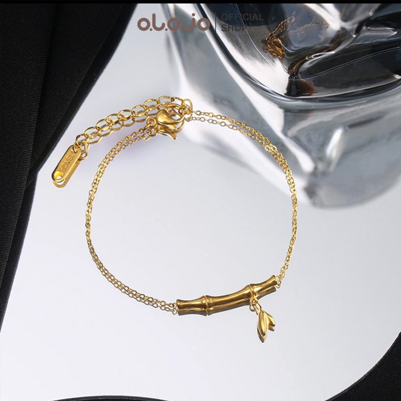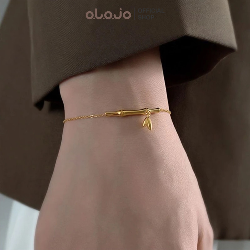 OLOJO Gelang Titanium Anti Karat Dari Bambu Sederhana Untuk Wanita Cocok Untuk Dipakai Sehari-Hari