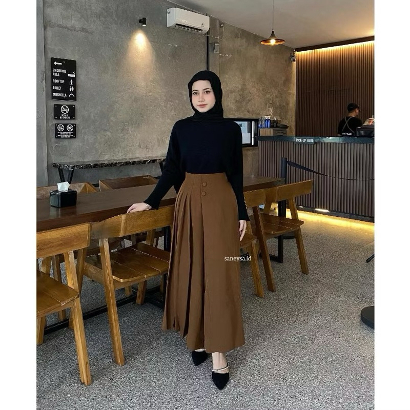 Shenna Kulot Pleats - Celana Kulot Rok Brown