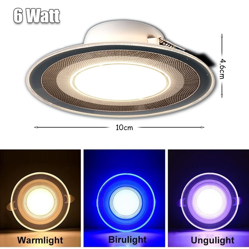 Sinar Baru Led Lampu Downlight Led 6 Watt 3 Warna Cahaya Kuning Biru Ungu / Putih Kuning Warmwhite Panel Light Lampu Plafon Extrabright Terang Tidak Silau Lampu untuk Plafon Langit-langit dan lain-lain