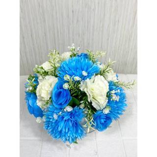 Bunga Meja Krisan Jarum Mix Ros Biru Mix Karnesen Pot Bola