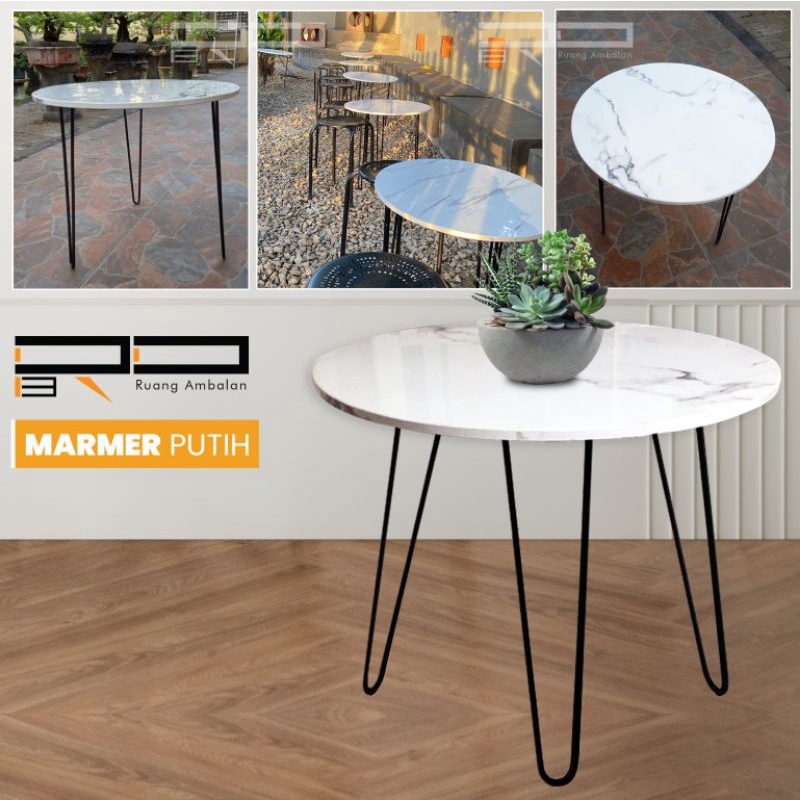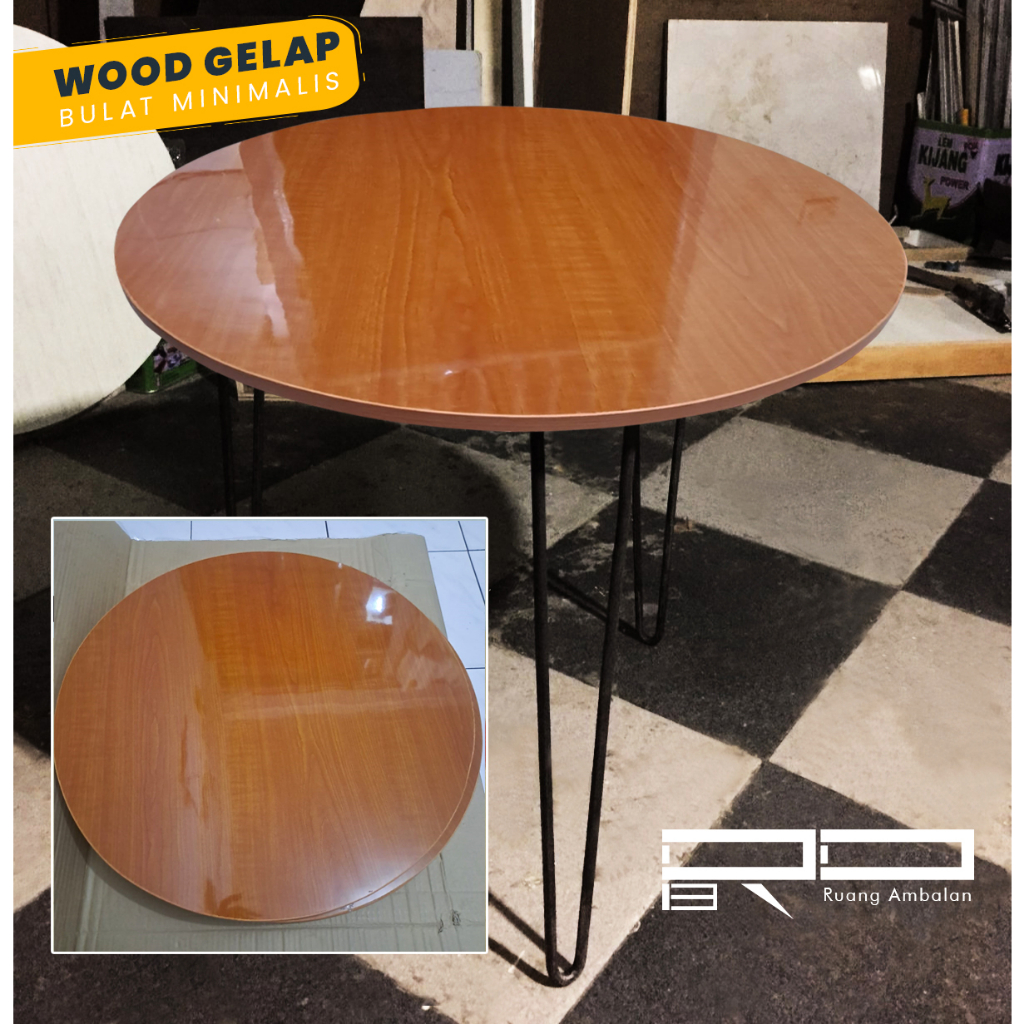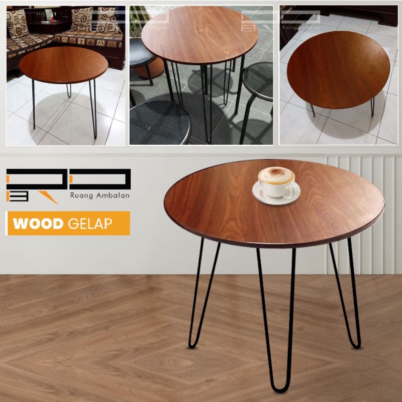 meja cafe bulat Meja Cafe Minimalis Kayu & Besi Industrial Diameter 60 cm Untuk Coffee Shop