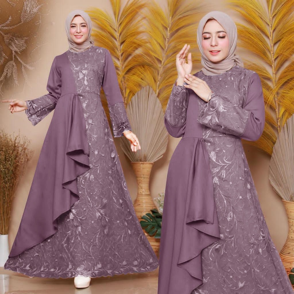 TERLARIS!! Zolan Gamis Brukat Terbaru Kekinian Pesta Seragam Kondangan Maxi Dress Fashion Muslim Wanita Premium - Size M L XL XXL Jumbo