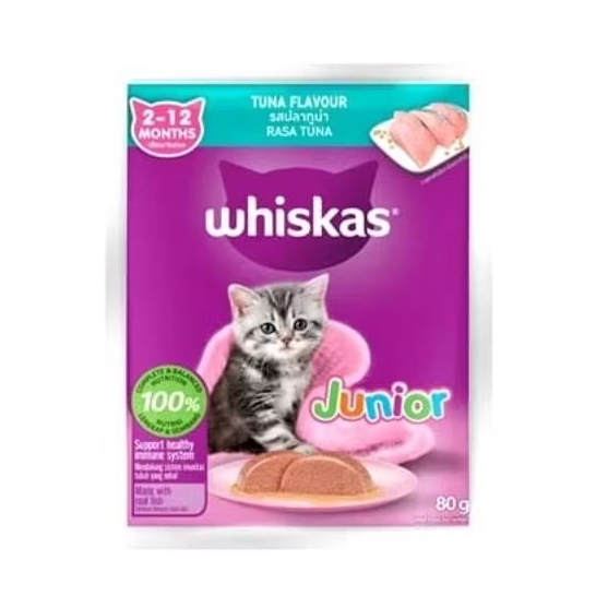 Makanan Kucing Basah/Wetfood Wishkas Junior Tuna Pouch 80gram