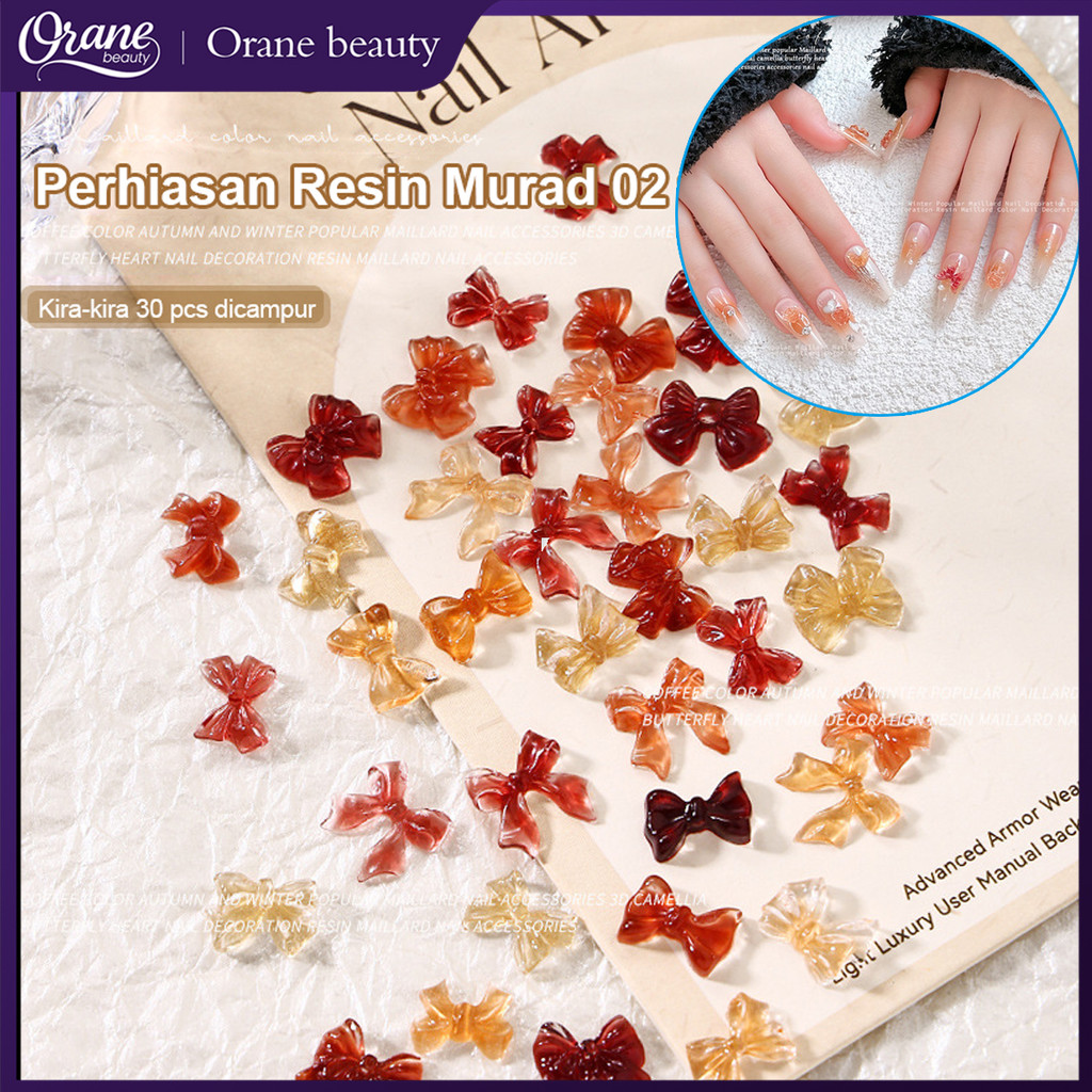 30 pcs Fashion Kawaii Musim Gugur Maillard Nail Art Pesona Dekorasi Kuku Busur Hati Resin Kopi Coklat Dekorasi Kuku Bunga Busur Hati Aksesori Akrilik DIY