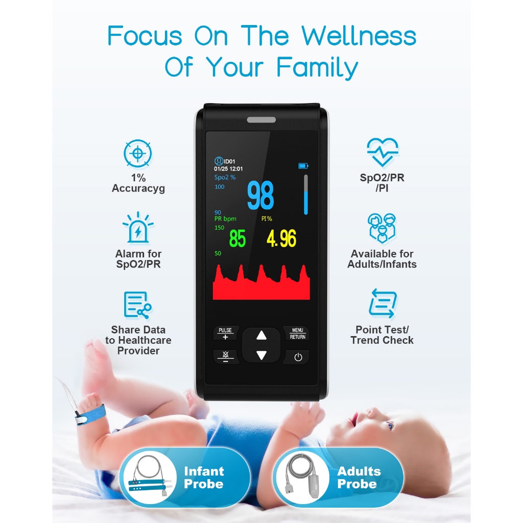 HealthTree Handheld Pulse Oximeter Digital Alat Ukur Oksigen Darah Oksimeter for Baby Dewasa
