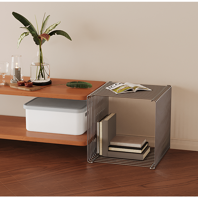 Meja Kecil Multifungsi dengan Penyimpanan, Rak Buku Serbaguna, Majalah Desain Estetis, Penyimpan Koran & Buku Minimalis