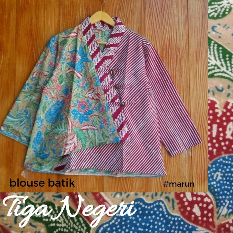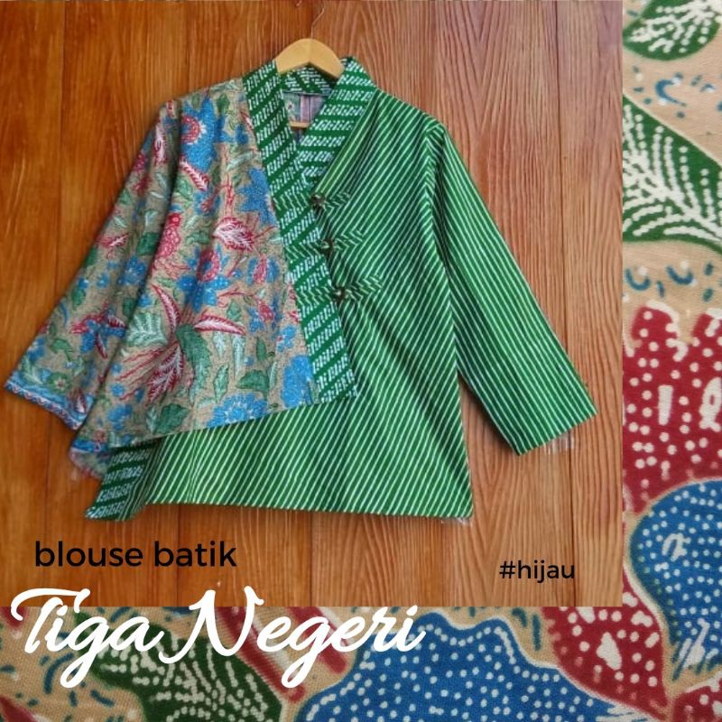 LANGITJUA - Wening 01 Blus Atasan Batik Wanita Busui Lengan Panjang | Blouse Batik Tiga Negeri Size M L XL XXL XXXL
