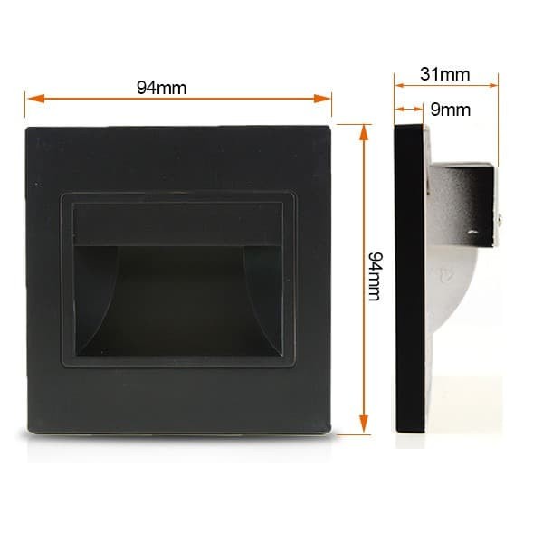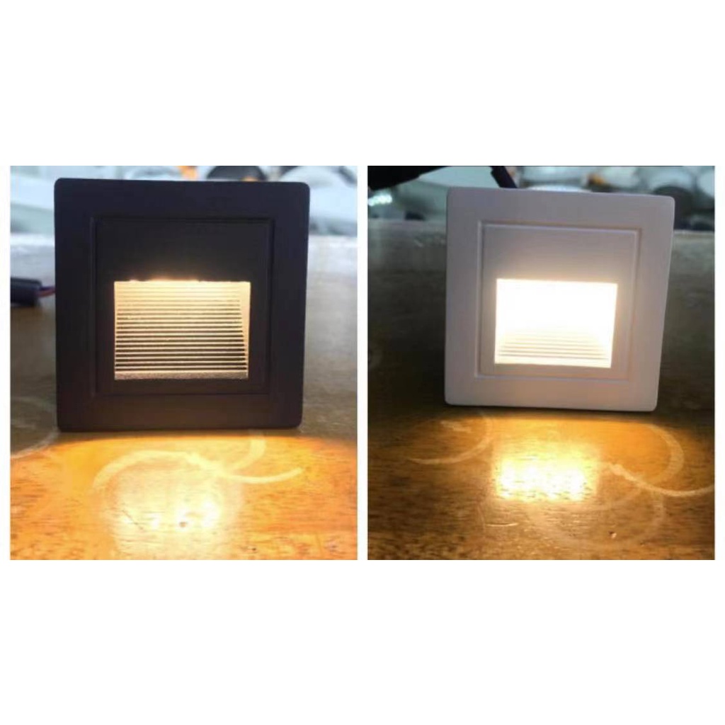 Lampu tangga dinding step LED Tanam Hitam 3W Nyala Warm White