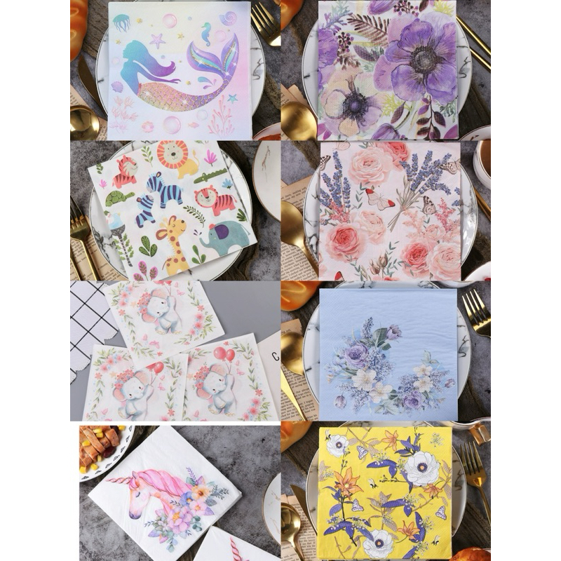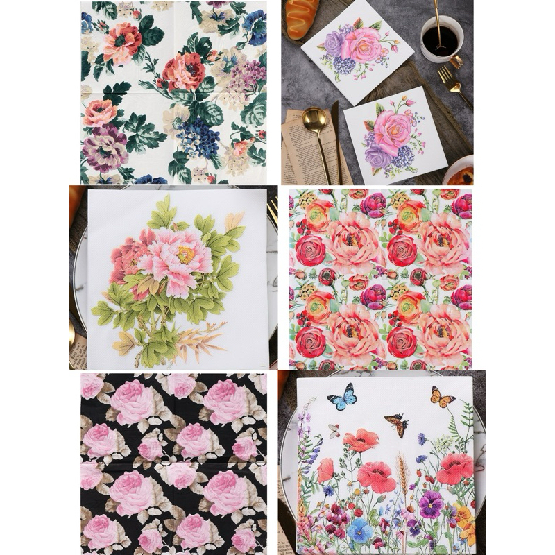 Tisu decoupage/10pcs/33x33/tisu motif mawar