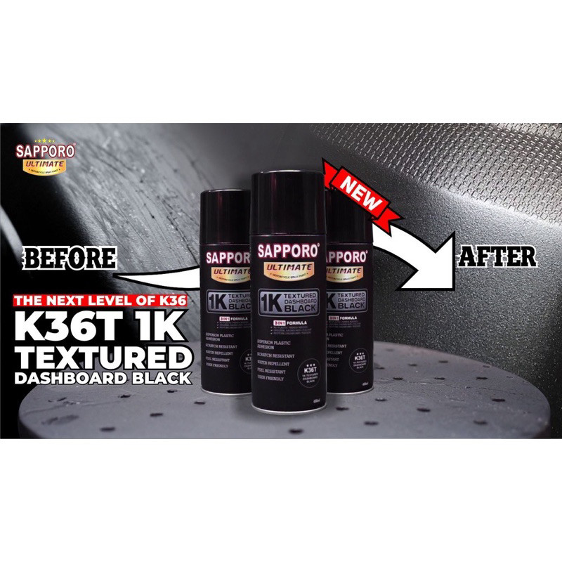 WOW! Sapporo Ultimate Cat Dashboard Hitam 400ml Textured Black K36T / Pilok dasbor body kasar texture tekstur kulit jeruk selebor slebor sepeda motor mobil pilok pilox semprot spray spet saporo