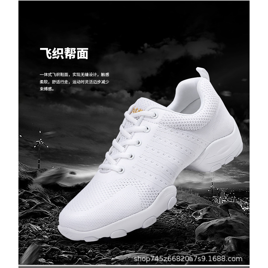 Men's White Dance Shoes Soft Sole Lightweight Square Dance Shoes Breathable Jazz All-Season Sports Shoes Universal Dance Exercise Shoes