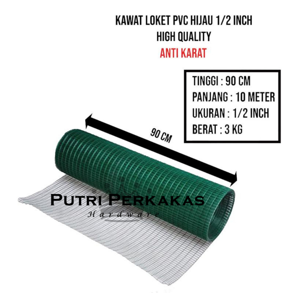 [TERMURAH] Kawat Loket PVC 1/2 Inch Hijau 1 ROL 10 METER | Kawat Kandang Ayam Burung Kawat Taman