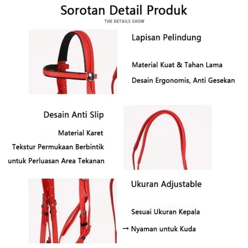 1set Tali Kekang Kuda Pacu Peralatan Berkuda Tali Pacuan Kuda Tahan Air Bridle Kuda