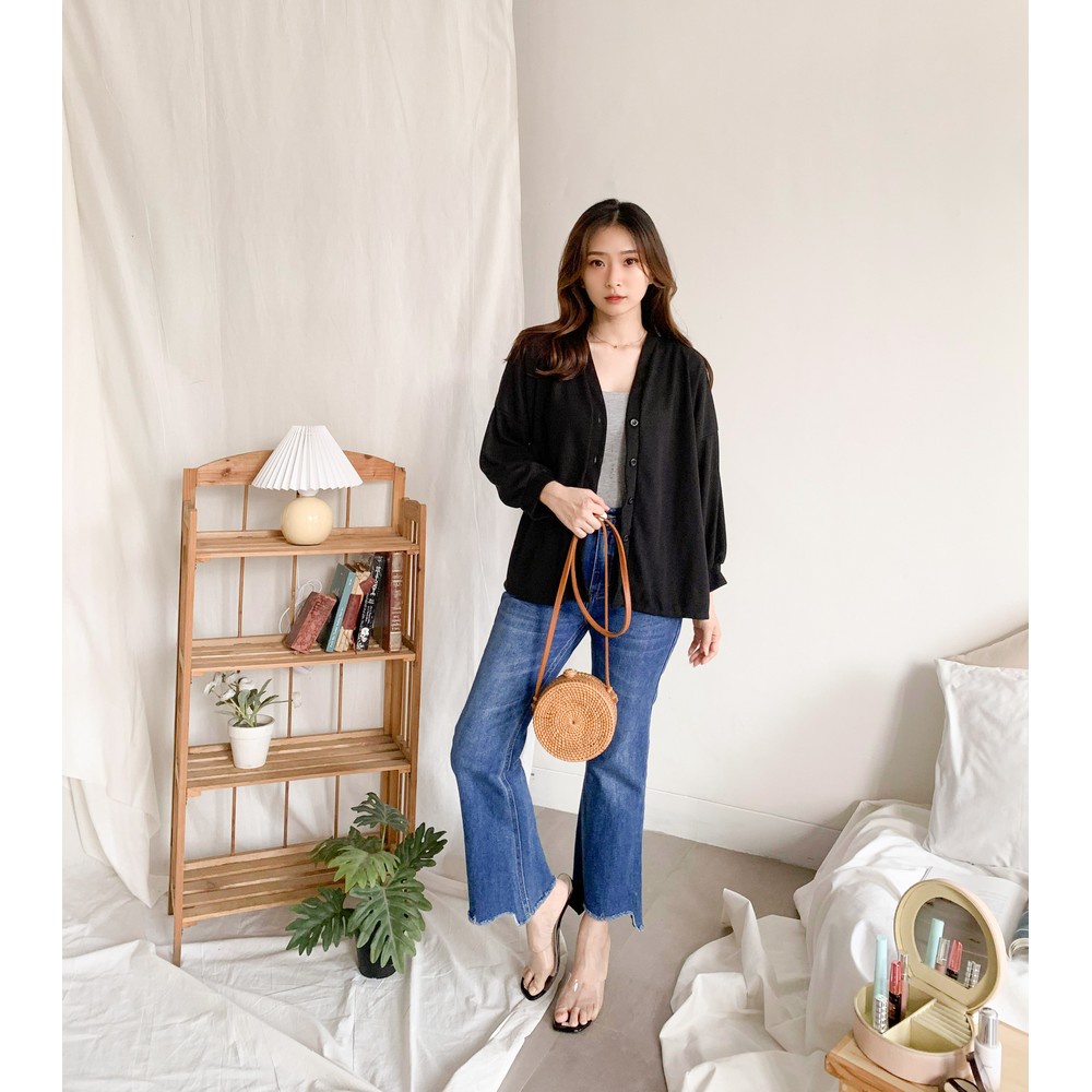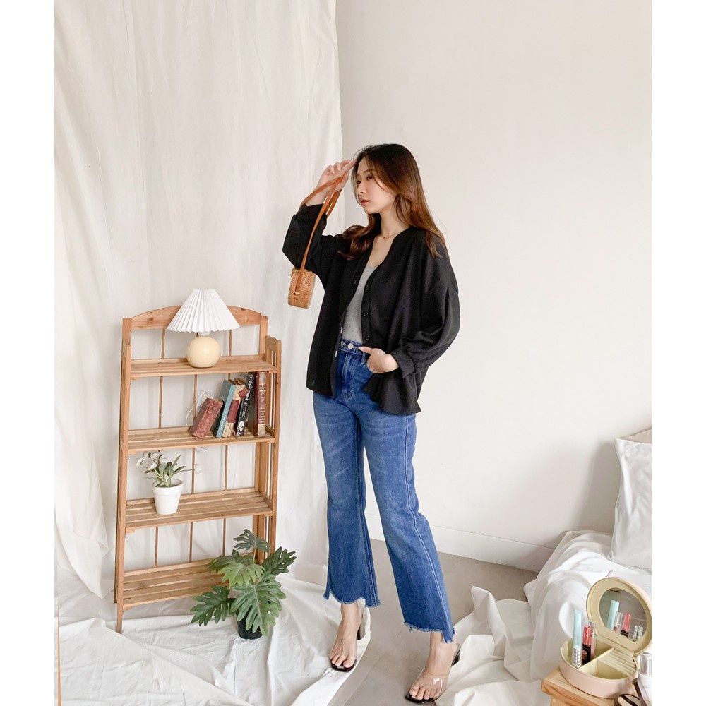 Yoenik Apparel Zanitha Button Tops Black M16257 R35S3 - Atasan Wanita Baju Waffle Blouse Korea