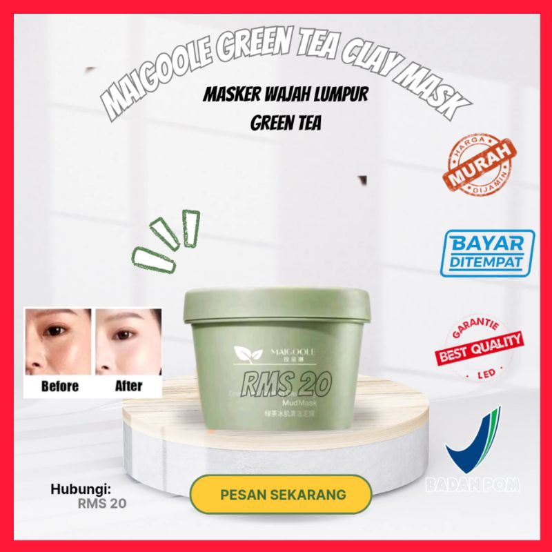 (BPOM) MAIGOOLE GREEN TEA CLAY MASK MASKER WAJAH LUMPUR ORGANIK BPOM MURAH PEMBERSIH WAJAH MASKER WAJAH LUMPUR GREENTEA PEMBERSIH PENGHILANG PENGECIL KOMEDO