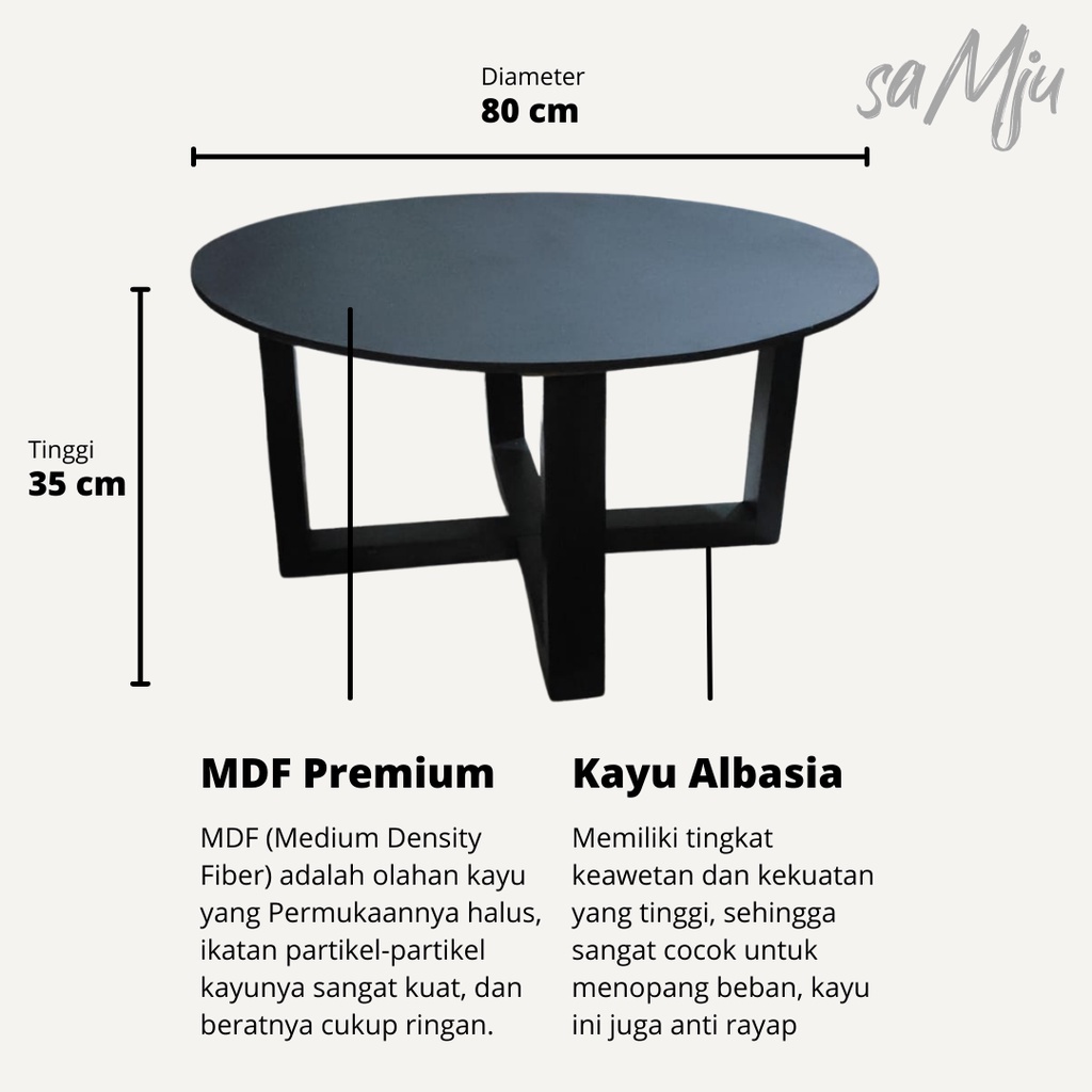 Meja Kopi Lesehan Short Coffe Table Vintage Minimalis Scandinavian Japandi