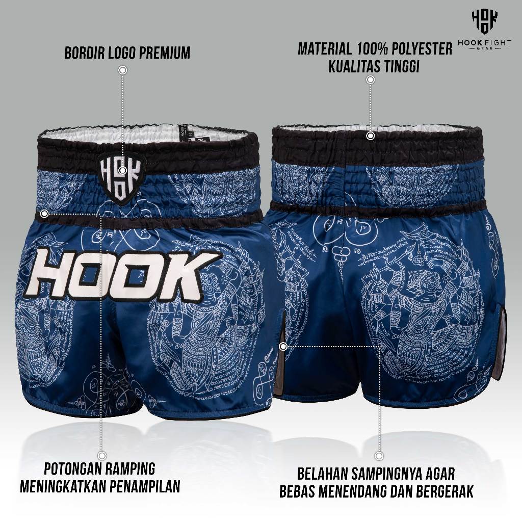 Celana Muaythai Hook Fight Gear, Celana Muay Thai , Muay Thai Shorts, Celana Pendek Muay Thai