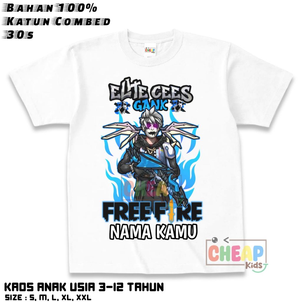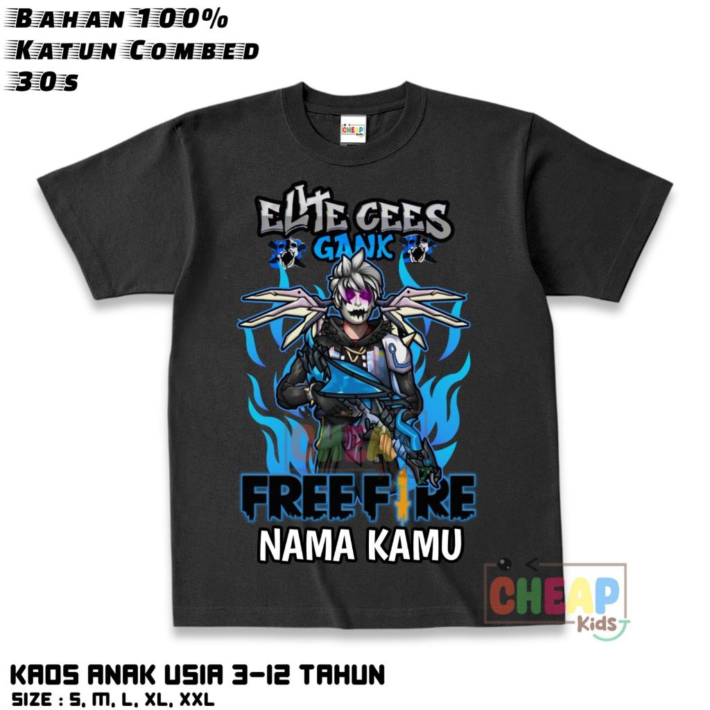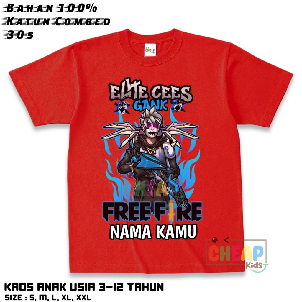 (BISA COD) Kaos Free Fireee Freefire FF Elite cees gank SG Anak Laki laki Atasan Anak Epep Free firee Usia 3-12 Tahun Free Nama Kamu