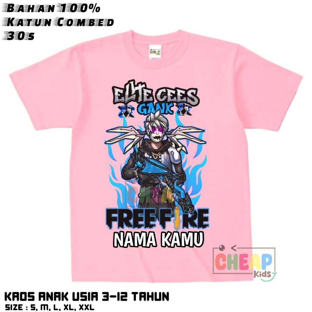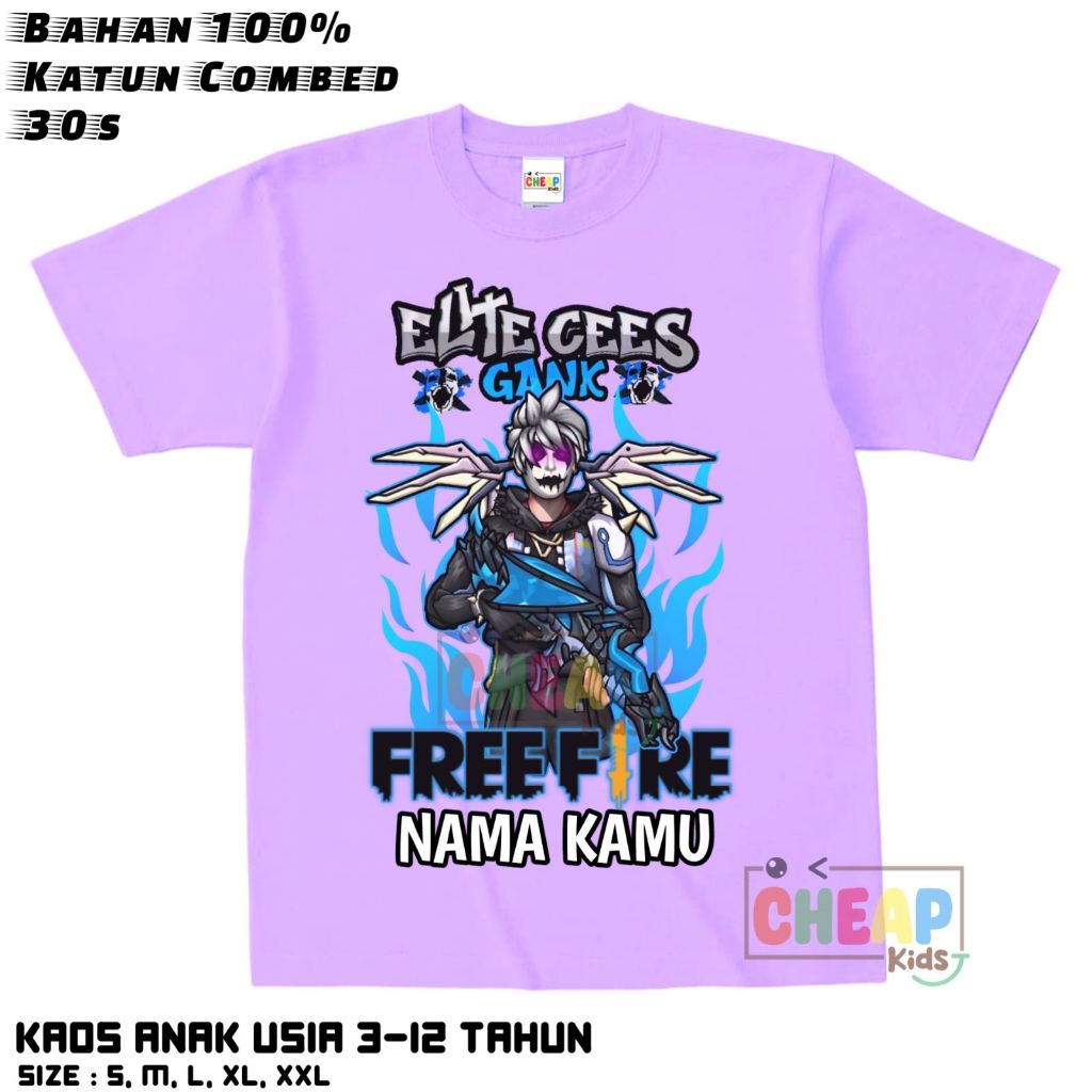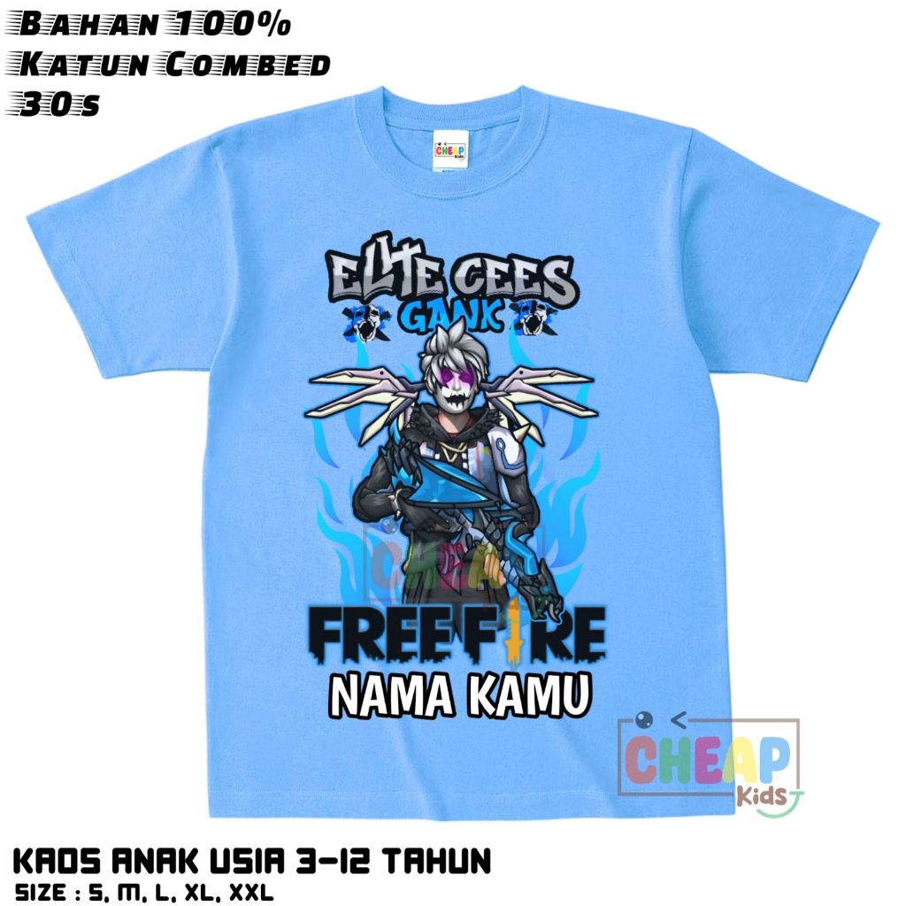 (BISA COD) Kaos Free Fireee Freefire FF Elite cees gank SG Anak Laki laki Atasan Anak Epep Free firee Usia 3-12 Tahun Free Nama Kamu