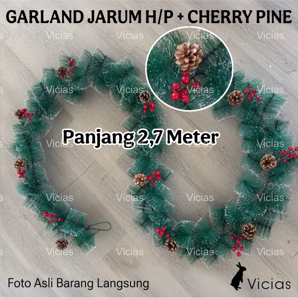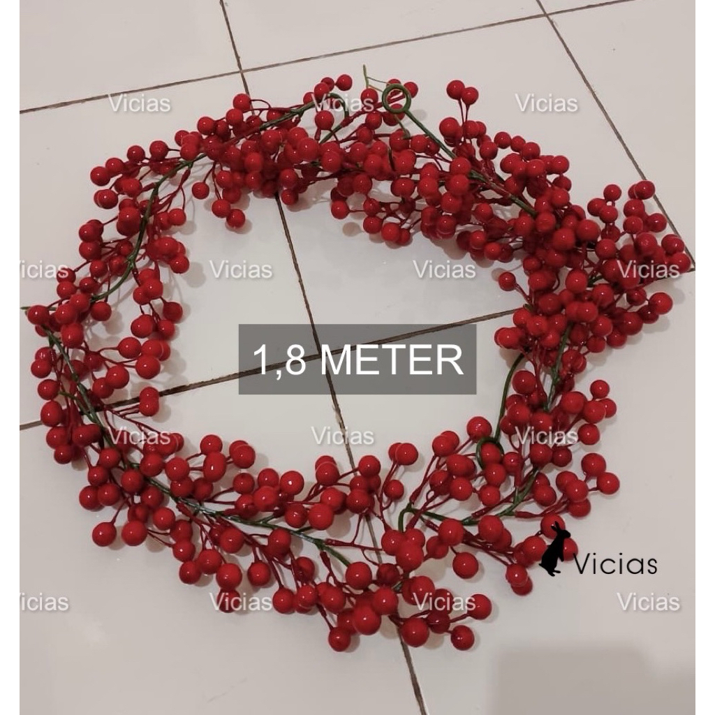 [2,7 Meter] Garland Natal Daun KAWAT Lingkar Berry Cherry Christmas Grosir Jakarta Murah