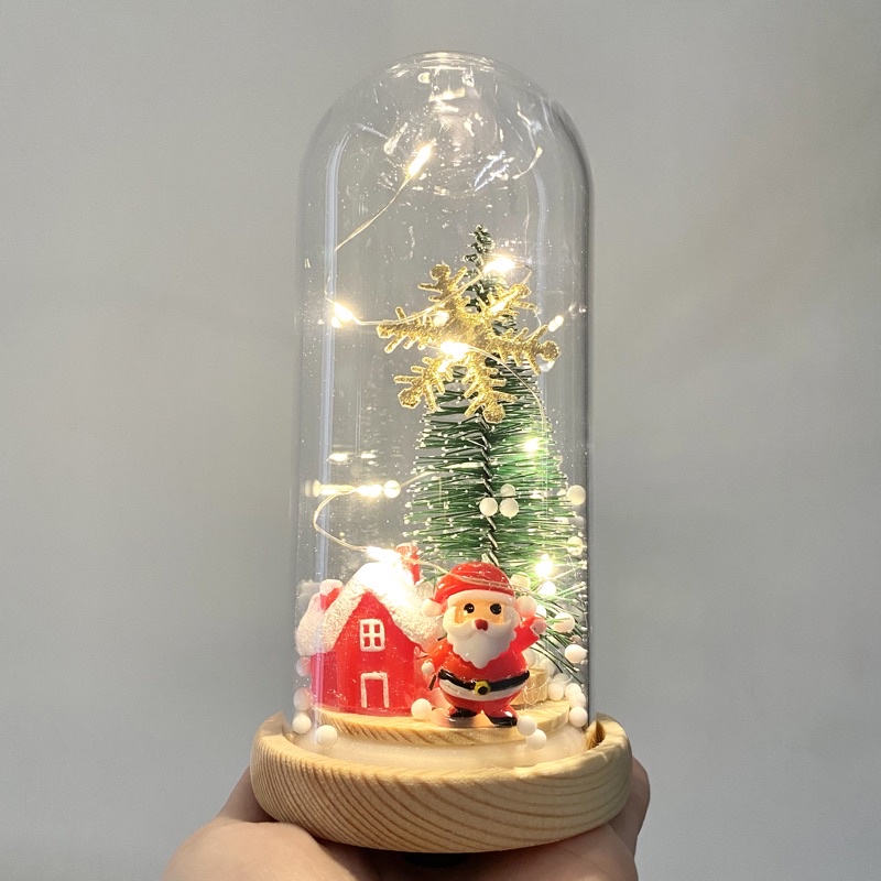 Glass Dome LED Lampu Glassdome Natal Santa Dekorasi Pajangan Christmas Gift Hampers Unik