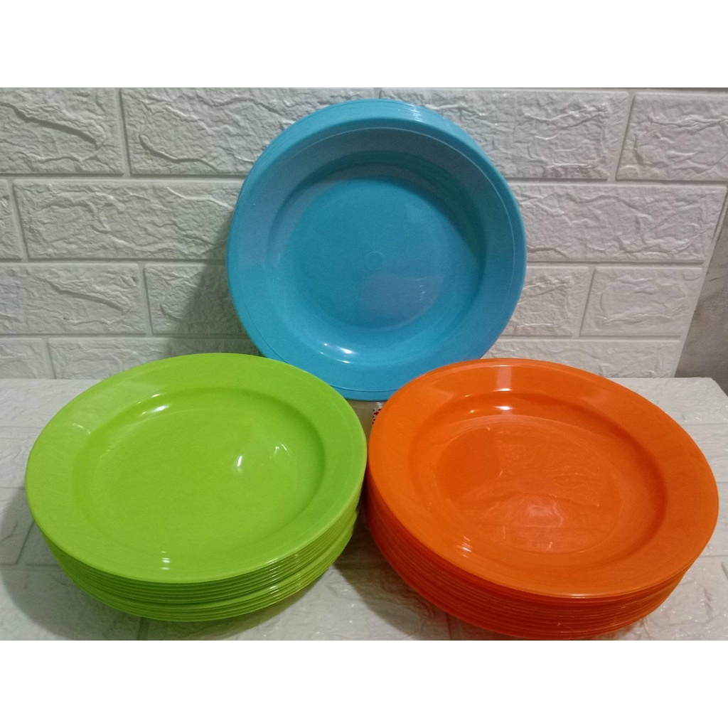 12 pcs piring plastik cantik.. piring tebal piring warna