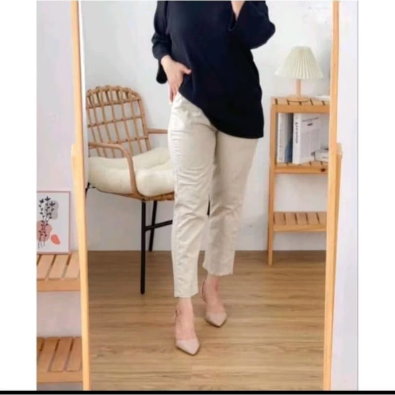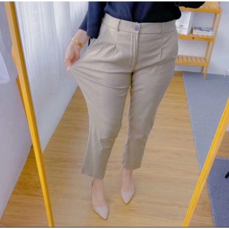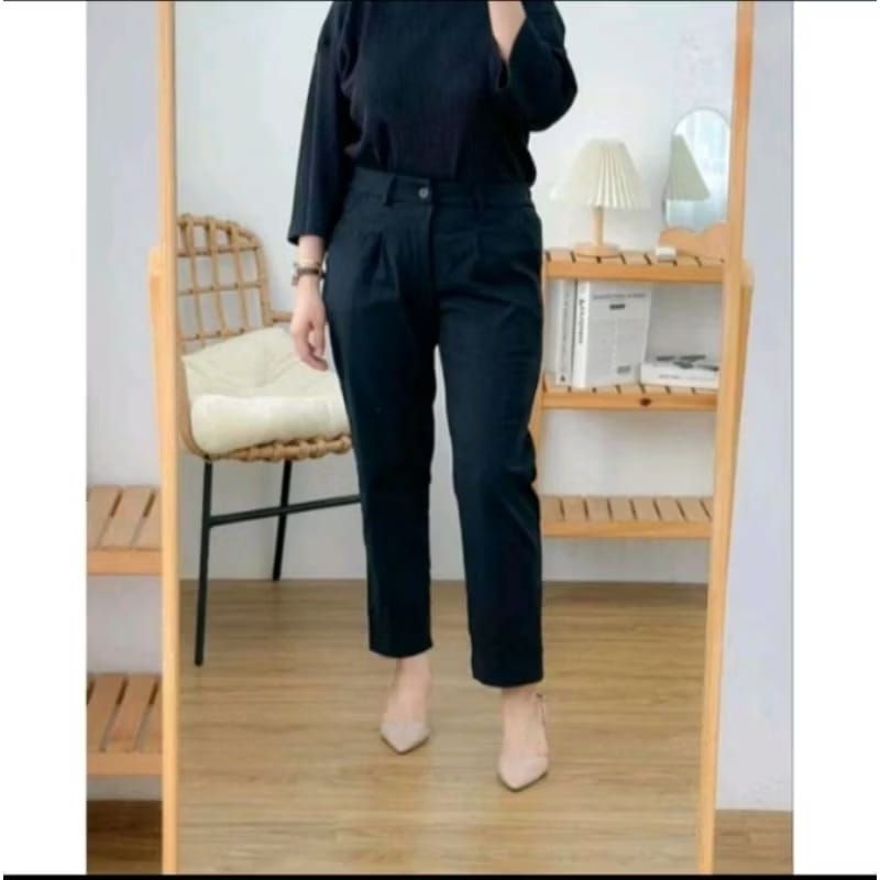 Celana Pensil Wanita Baggy Pant Kantor Jumbo Model Terbaru Bahan Stretch Melar