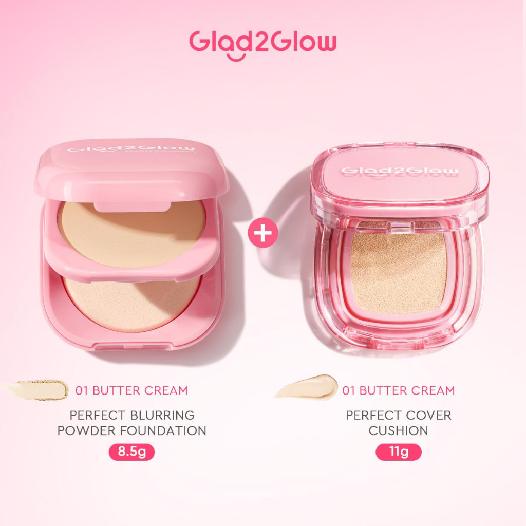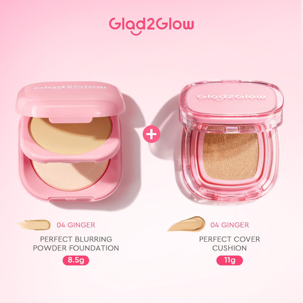 [ 100%ORI ] Glad2Glow Perfect Blurring Powder Foundation&Perfect Cover Cushion foundation Setting waterproof Concealer Oil-Control matte Sweatproof Finish Poreless Highlighting and Contouring Cushion Refill Foundation two way cake BB CC Makeup