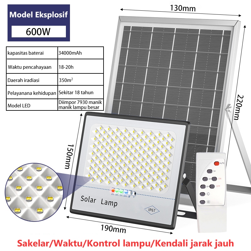 SolarWerk Diimpor dari Jerman【Garansi 30 tahun】Lampu tenaga surya outdoor 1500W 7930 LED with Power Display Timing Function IP67