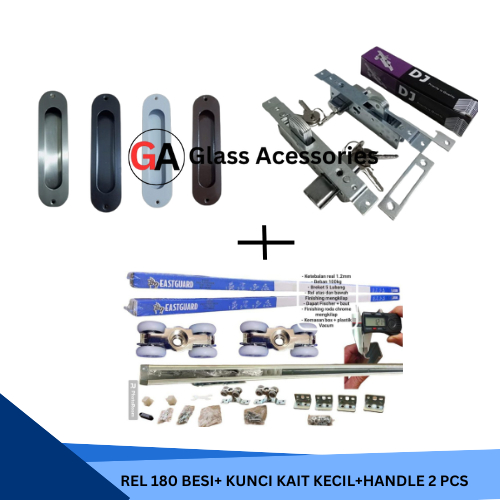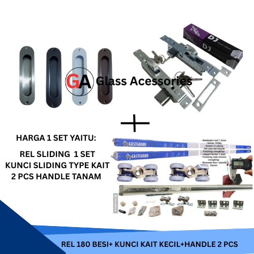 REL PINTU SLIDING GESER BESI+KUNCI KAIT KECIL+HANDLE TANAM OVAL 4X15 1 SET