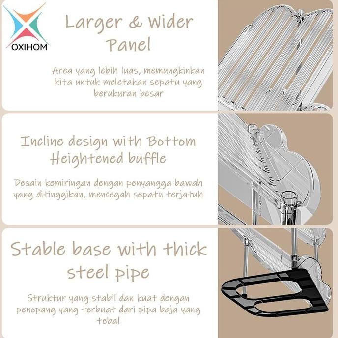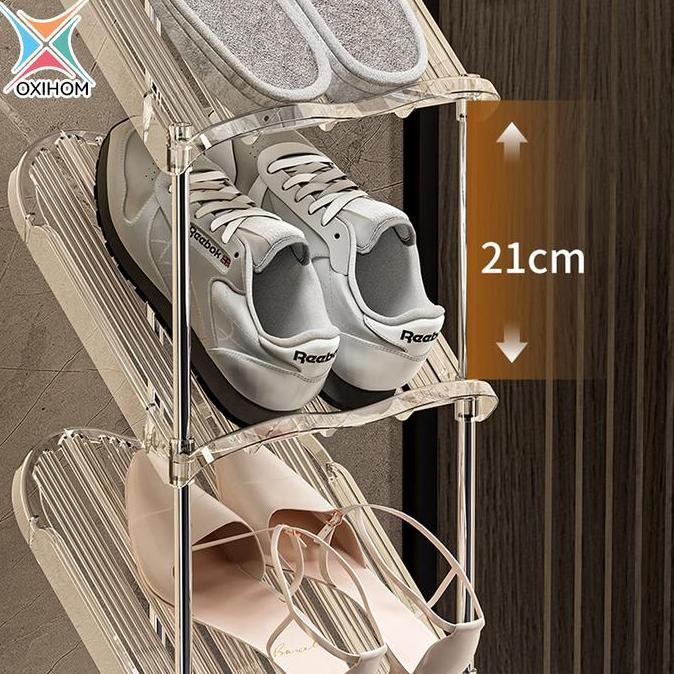 Murah Oxihom Rak Sepatu Aesthetic Transparan Rak Sepatu Susun Minimalis Stainless Steel Besi Plastik Lemari Sepatu Susun Non COD